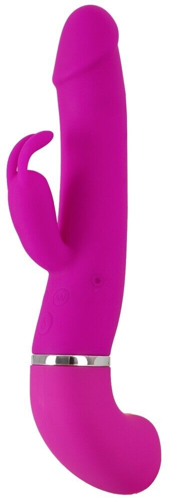 Vibrator with a clitoral stimulator that simultaneously stimulates the vagina, G-spot and clitoris. The fancy squirting function can be controlled at the push of a button. This vibrator is perfect for wonderfully wet climaxes! The bottom part of the vibrator can be unscrewed so that the vibrator can then be filled with water. The 2 powerful motors (one in the shaft and one in the clitoral stimulator) provide diverse pleasure with their vibration modes. There are 12 vibration modes per motor. The vibrator remembers the last vibration mode that was used before it was turned off, thanks to its clever memory function, and it starts on this vibration mode when it is turned on again. The squirty vibrator is covered in soft silicone which feels great against the skin. The vibrator is also waterproof which means that nothing will stand in the way of thrilling fun in the bath or the shower. It can be recharged with the included USB cable. Includes a high-quality storage bag.